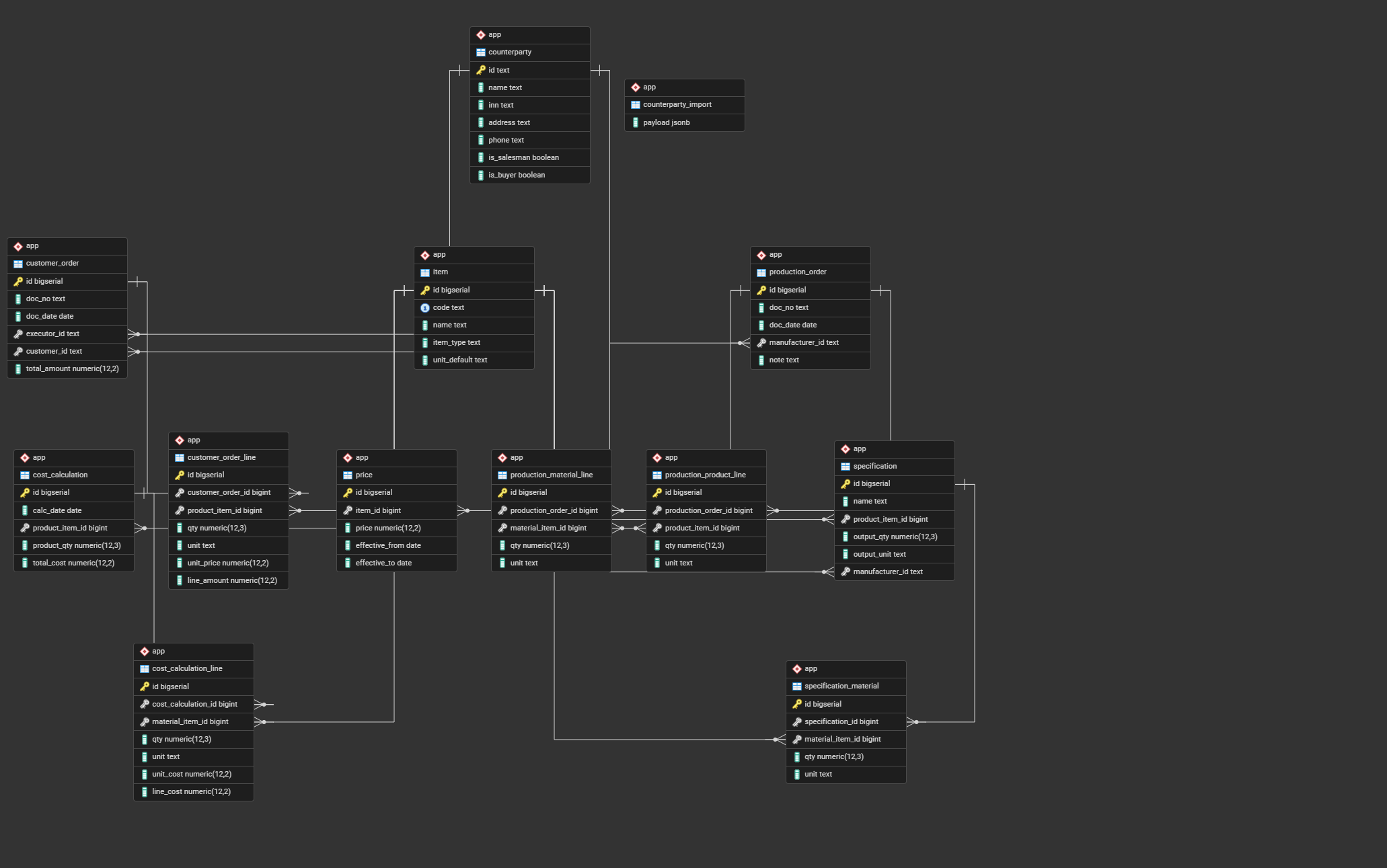 3.5. PRODUCTION_ORDER, PRODUCTION_PRODUCT_LINE, PRODUCTION_MATERIAL_LINE