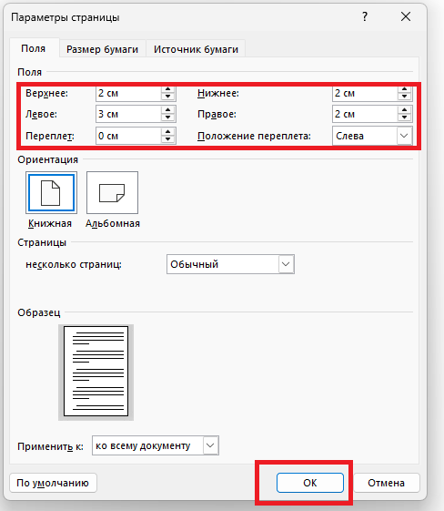 - Ориентация: Книжная.