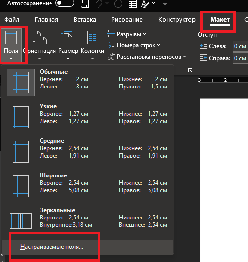 2. Перейдите на вкладку Макет (или Разметка страницы)